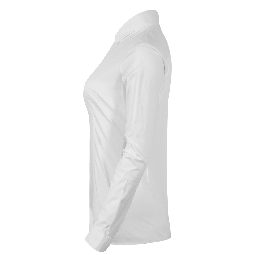 Ženska košulja, strukirani kroj, četiri ušitka napred, dva pozadi, sedam dugmadi napred, dva na manžetnama, rezervna dugmad, sva dugmad u boji košulje, lako peglanje i održavanje